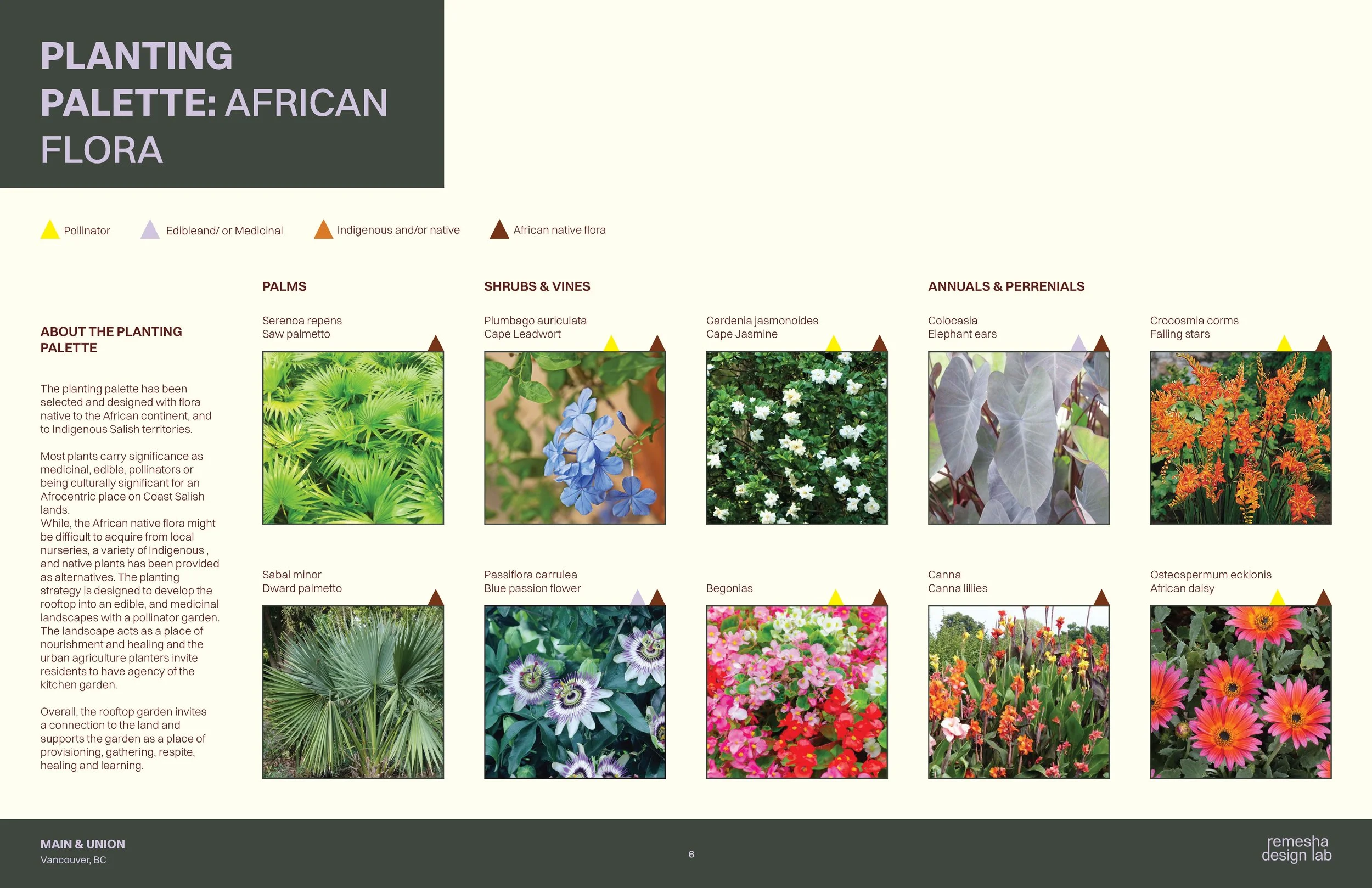 Project description: This project leads the schematic landscape design for Main & Union, rooted in Black identity, cultural values, and spatial traditions. Centered on a circular gathering space symbolizing unity, the rooftop weaves zones for ceremony, storytelling, gardening, and play. Medicinal and kitchen gardens blend Indigenous, native, and African flora, supporting healing and nourishment, while the Level 2 Zen garden offers quiet retreat. Natural materials and African-inspired paving ground the design culturally and ecologically.